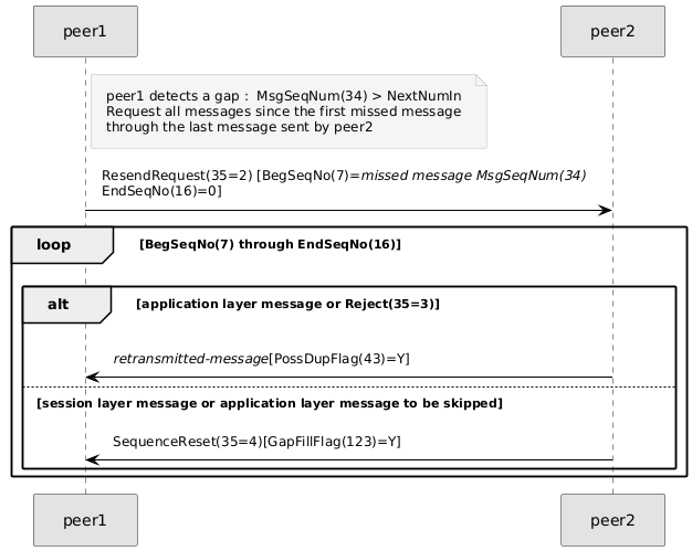 Receipt of ResendRequest(35=2) message from a FIXT peer